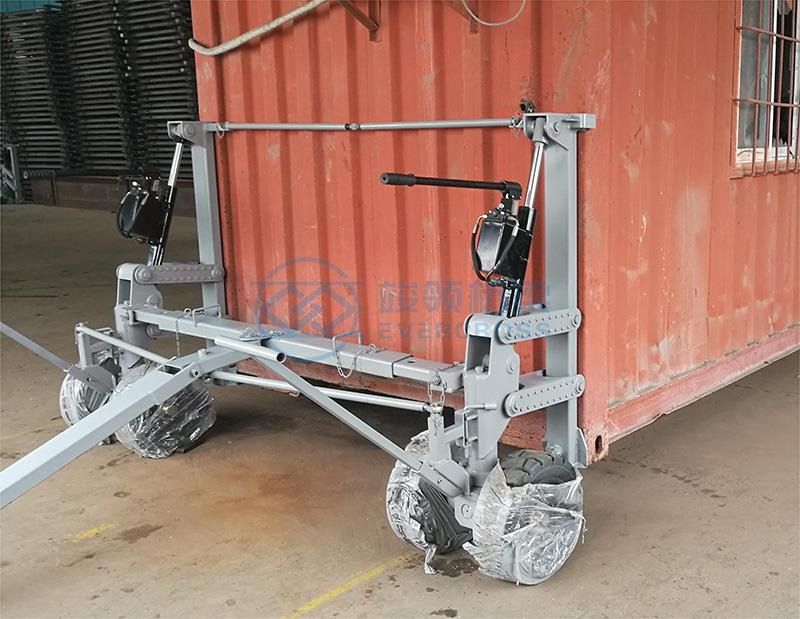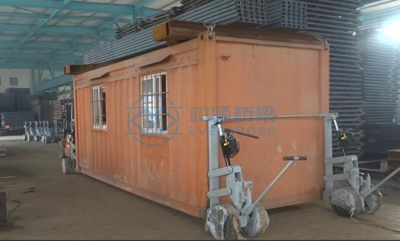 方舱行走机构 别名:方舱行走机构,方舱运输设备,包装箱运输设备等。集装箱移动设备是针对标准集装箱或带有标准角件物体移动而开发的产品,具有操作简单,行走方便的特点。用于短距离、低速转移机体包装箱、运输集装箱。