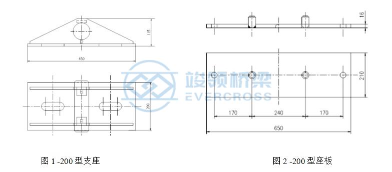 200型桥座:桥梁端柱支承在桥座轴梁上。